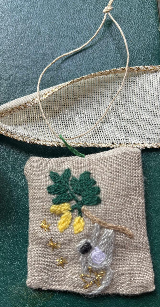 These Christmas tree decorations are made from 100% linen fabric and hand embroidered.